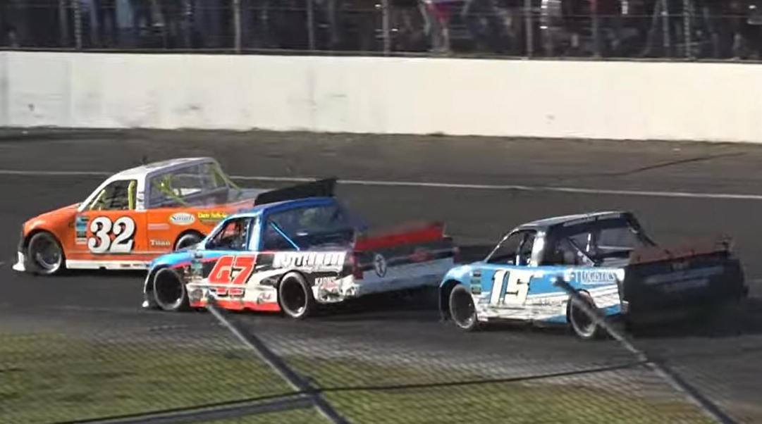 The 47 of Todd Taylor and the 12 of Ed Ryan Jr. benefited from the melee up front. Taylor was on the point and Ryan lined up second. They were left to a one lap shootout for the win from the inherited front row . Taylor edged Ryan to the line for Victory number 1 of his ProTour career after an exciting door to door battle. Taylor's win earned him the Evolve Bank & Trust Mortgage New Winners Bonus. Ryan had to settle for second. #42 Chris Palamar finished 3rd in his first tour event . He received the NorthEast Truck & Auto Hard Charger Award. Jason Paquette brought the #94 home in 4th. #52 Mercedes Caron scored a 5th pace finish. This was her best tour run. Tyler Chapman turned the quickest lap of the weekend which earned his team the Taylor Lawn Care / Karns Automotive fast time bonus. Hudson Speedway was up next